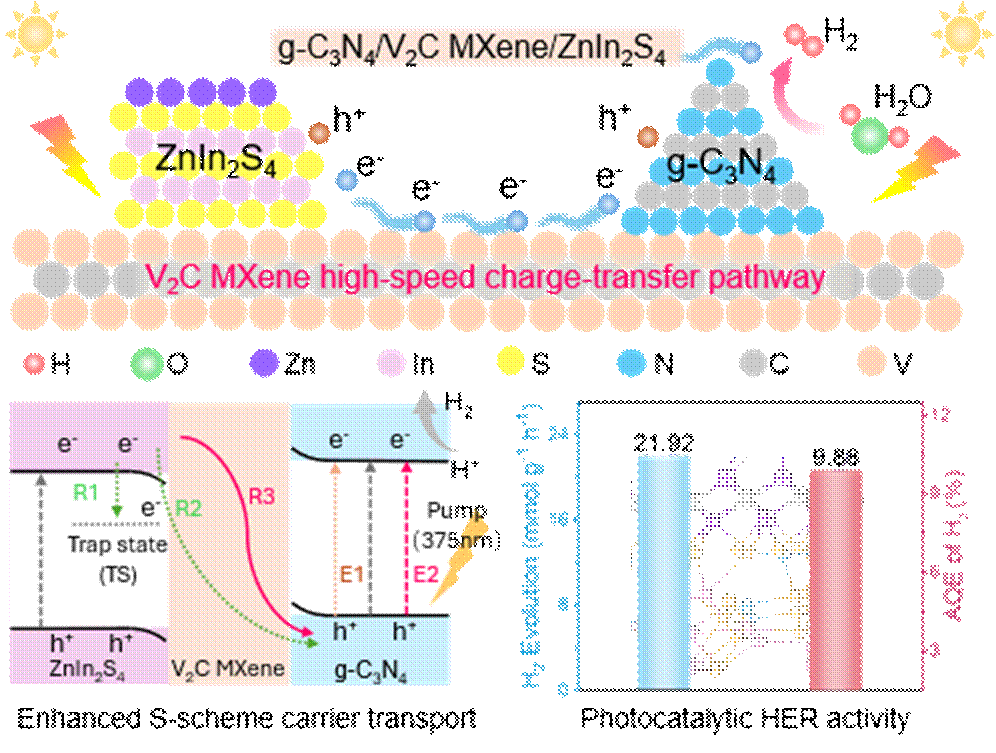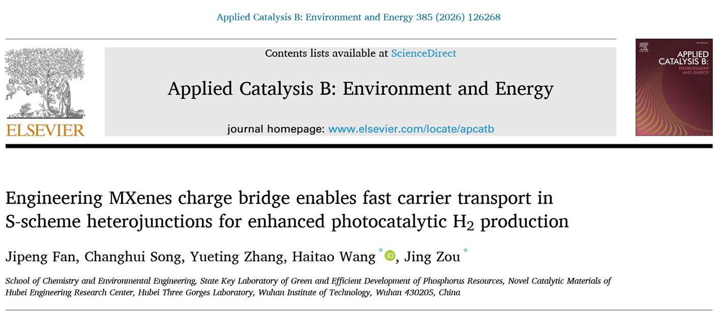 (通讯员程然)近日,我校化学与环境工程学院催化与固废协同创新团队在国际知名期刊Applied Catalysis B: Environment and Energy(IF=21.2,中科院一区TOP)上发表题为“Engineering MXenes charge bridge enables fast carrier transport in S-scheme heterojunctions for enhanced photocatalytic H2 production”的最新研究成果。武汉工程大学化学与环境工程学院为论文唯一署名单位,2025级博士研究生凡纪鹏为论文第一作者,王海涛副教授与邹菁教授为该论文共同通讯作者。