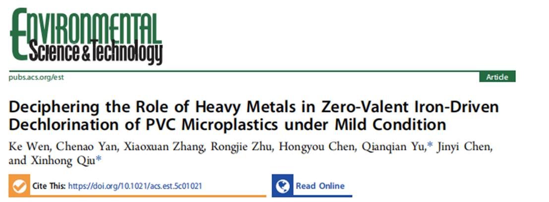 Deciphering the Role of Heavy Metals in Zero-Valent Iron-Driven Dechlorination of PVC Microplastics under Mild Condition. Environ. Sci. Technol. 2025, DOI: https://doi.org/10.1021/acs.est.5c01021