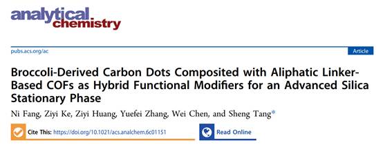 本网讯(通讯员 薛文轩) 近日,我校化学与环境工程学院汤胜老师课题组在美国化学会出版的分析化学领域顶级期刊《Analytical Chemistry》发表题为“Broccoli-Derived Carbon Dots Composited with Aliphatic Linker Based COFs as Hybrid Functional Modifiers for an Advanced Silica Stationary Phase”的学术论文,武汉工程大学为第一署名及通讯单位,化学与环境工程学院分析化学专业2024级研究生方妮为第一作者,环境工程专业2023级本科生柯子怡、应用化学专业2024级本科生黄子怡分别为第二、第三作者,汤胜副教授为论文的唯一通讯作者。论文得到了国家自然科学基金、湖北省自然科学基金以及武汉工程大学研究生创新基金的支持。
