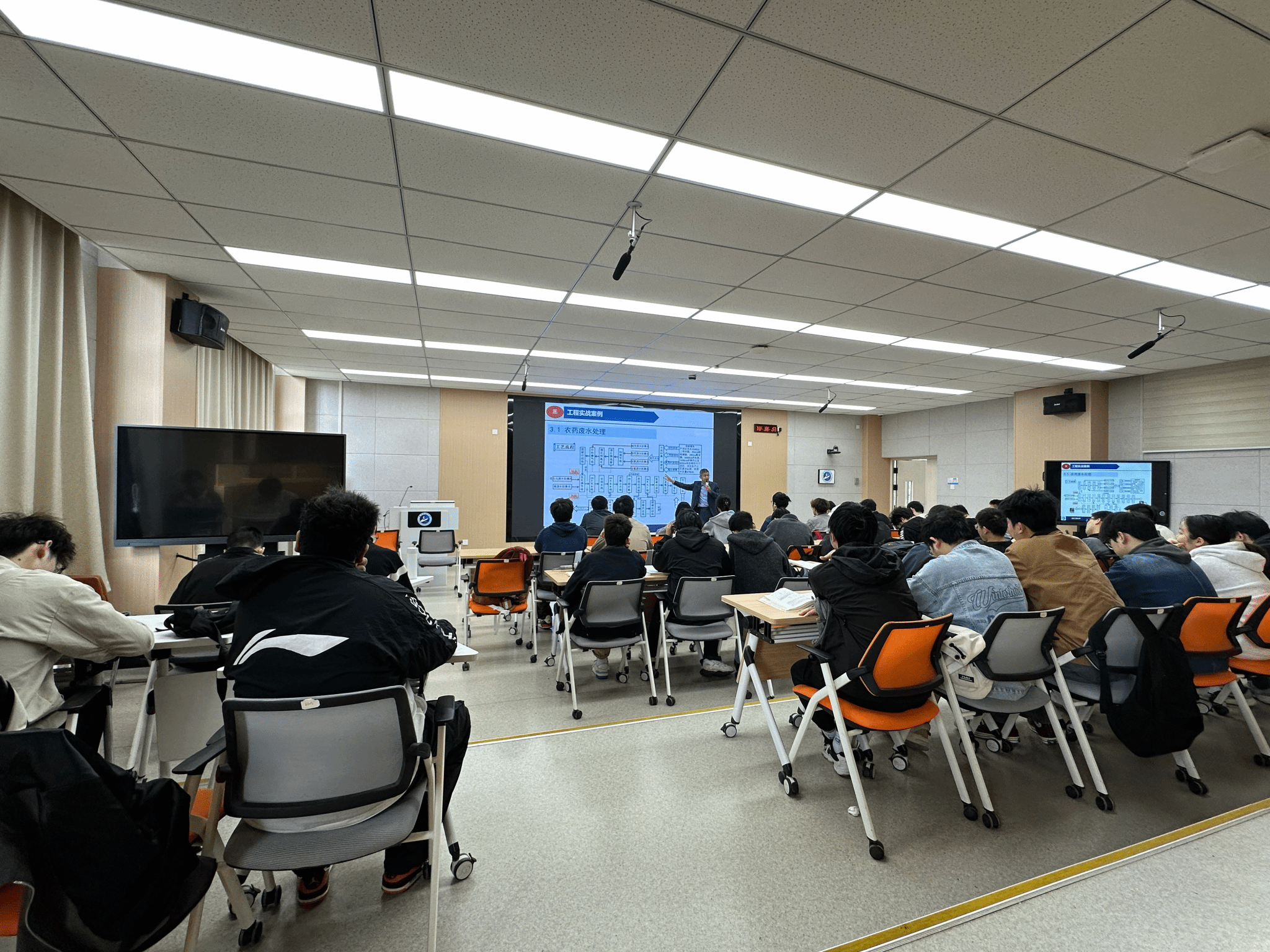 为深化产教融合、提升环境工程专业学生的工程实践能力,2026422日,应《水污染控制工程》课程邀请,精细化工废水处理领域资深专家杨文斌教授走进课堂,为环境工程专业大三学生带来了一场题为《精细化工废水处理讲座》的专题报告。讲座围绕行业现状、核心技术、工程案例及绿色转型等维度展开,内容丰富、案例翔实,现场气氛热烈。