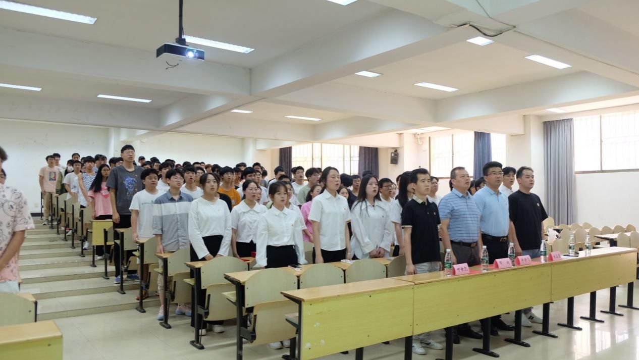 本网讯(通讯员 李杨)为深入学习贯彻党的二十大精神,推进主题教育走深走实,加强我院青年学生的政治引领,着力为党培养和输送坚定的青年马克思主义者。我院于6月8日举行“青马工程”培训班暨第31期团员开班仪式。校团委副书记邓欢、党委副书记许守飞、学院团委书记林孟雷、团干李杨,辅导员何世凯及培训班学员们参加活动。